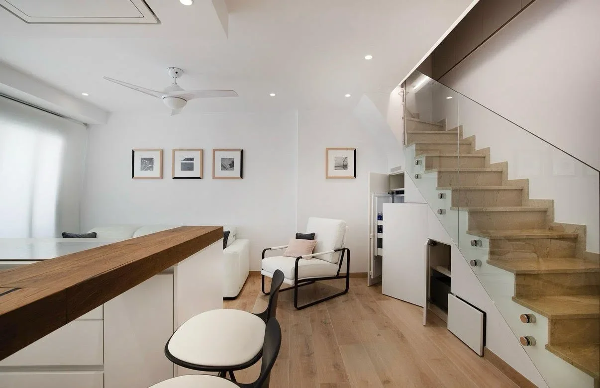 El proyecto incluyó la optimización de zonas comunes, la actualización de sistemas eléctricos y de fontanería, y la creación de ambientes confortables que se adaptan al estilo de vida del cliente.